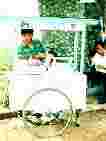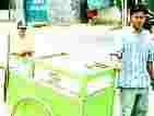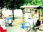 悠々とカキリマと呼ばれる荷車のようなものを引いて歩く人々。