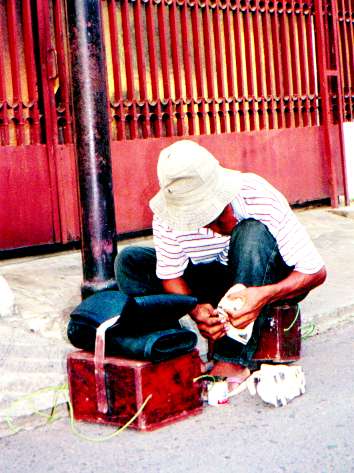 物静かな28歳のお兄さんだった。もうこの仕事を10年ぐらい続けているそうだ。約30分ぐらいかけてテニスシューズを上手に縫ってくれた。5000ルピアだった。1日平均6足から8足ぐらい直すそうだ。