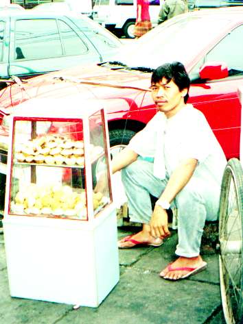 日本のすずカステラと同じで、ほんのり甘くておいしかった。形も色々で、魚、飛行機、ただの楕円形などがあった。1つ300ルピア。