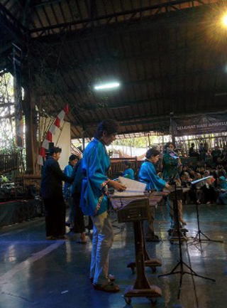 タマンミニインダーで現地のアンクロン・アルンバグループと交流演奏